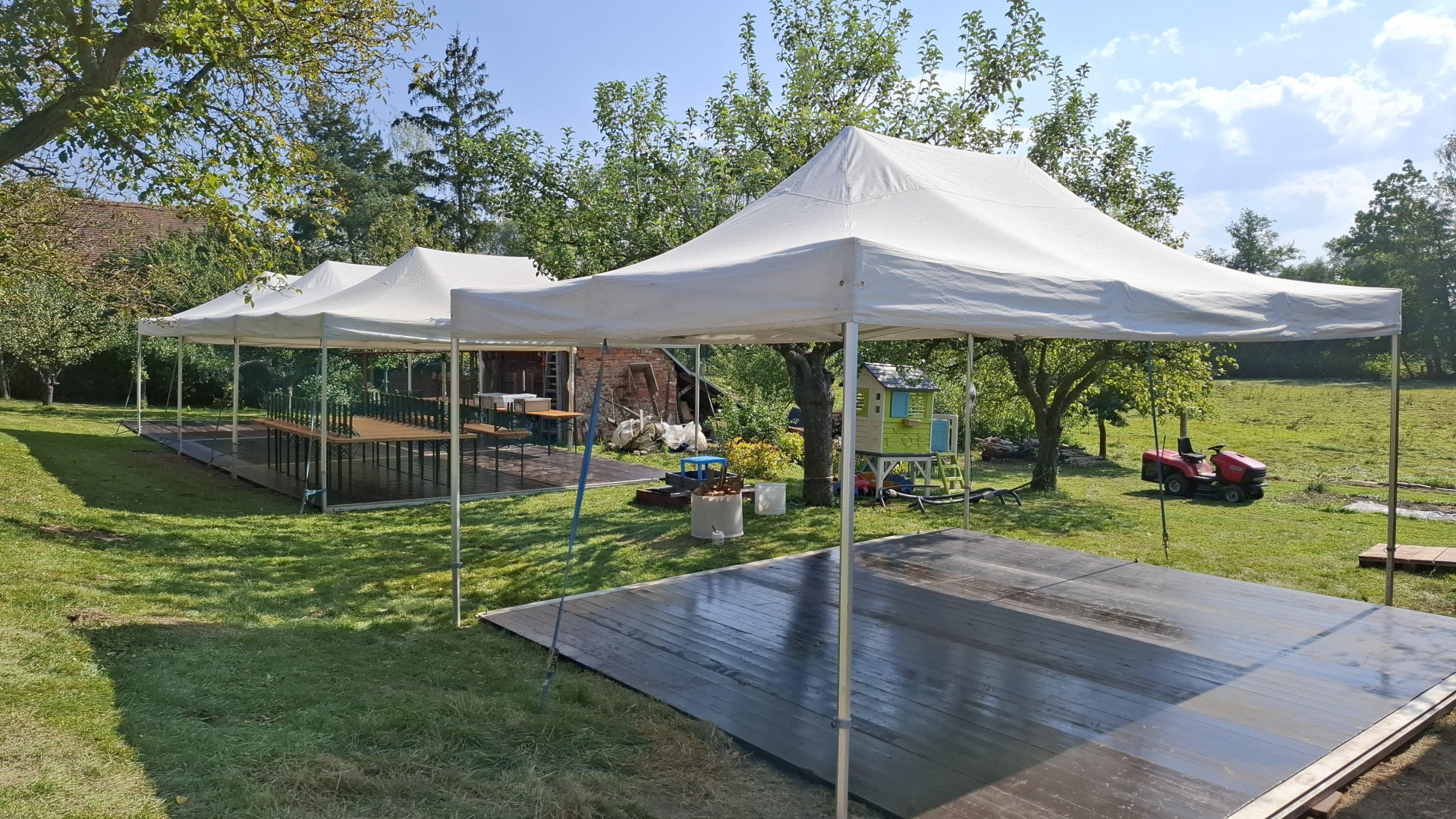 Velký zájem je nejen o výše uvedené partystany, ale i o nůžkové stany o rozměrech 3x3, 3x6, 4x6, 4x8 metrů a další, které pronajímáme v různých barevných kombinacích. Tato velká variabilnost naší půjčovny party stanů nám dává možnost pro naše klienty připravit vždy optimální řešení.