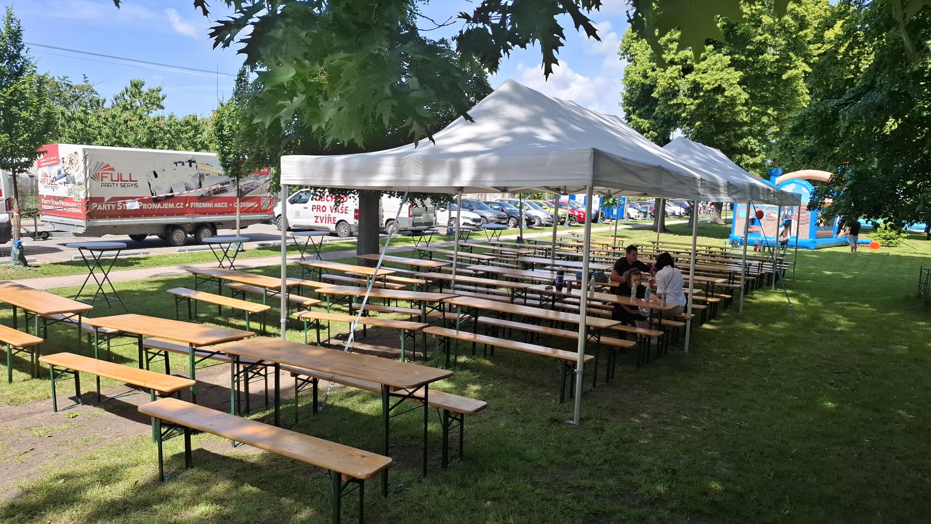 Náš párty servis a půjčovna párty stanů zajistí pronájem party stanů 3x3, 3x6, 4x6, 4x8, 5x5, 10x5, 10x10, 10x15, 10x20, 10x25, 10x30, 10x35, 10x40, 10x50, nůžkové stany, zahradní stany, pivní sety, výčepní zařízení, grily atd., pro vaše rodinná setkání, firemní akce nebo festivaly. Rádi a profesionálně Vám poskytneme párty servis pro firemní akce, kde potřebujete zajistit party stany, cateringové vybavení, catering, raut, banket, coffe break a další.