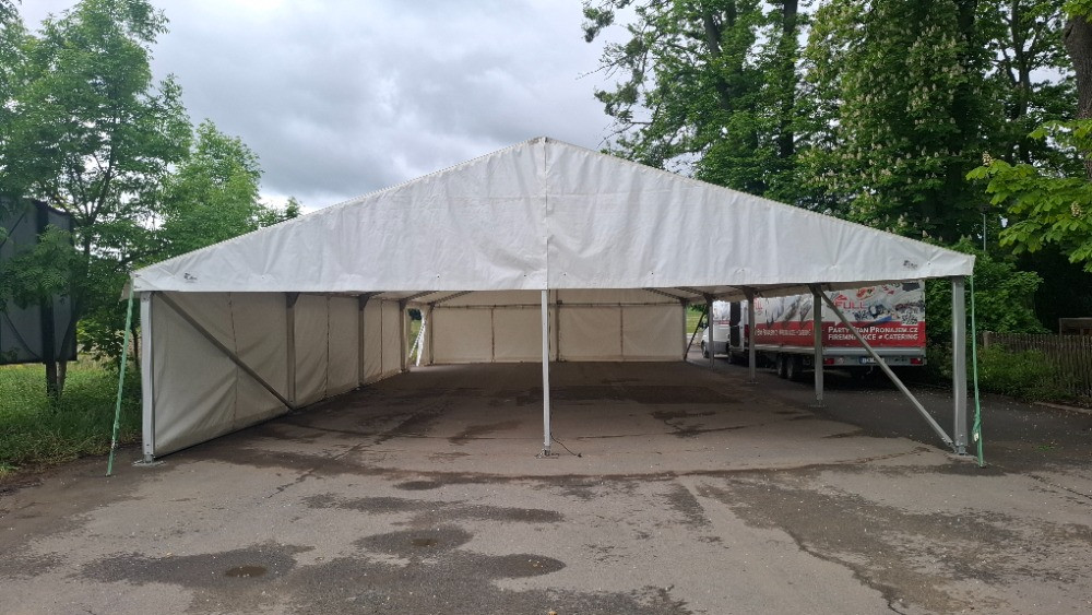 Naše firma zajišťuje pronájem párty stanů a nůžkových stanů pro společenské akce, firemní akce, výstavy, slavnosti, festivaly, rauty, recepce, večírky, oslavy, sportovní a kulturní akce. Naše půjčovna party stanů disponuje párty stany se sedlovou střechou o rozměrech 10x5, 10x10, 10x15, 10x20, 10x25, 10x30,..., 10x50 metrů.
